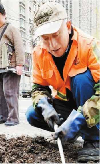 4月的沈陽早晨,溫度不過10攝氏度,老蘇卻累得滿頭大汗……終于挖到了管道,為了看清漏點(diǎn),老蘇用勺子將滲液舀出,然后脫掉手套,探下身子,用手一點(diǎn)點(diǎn)地去摸,絲毫不顧手掌手臂上沾染的各種油污?!懊搅耍 崩咸K用肩蹭了一下面頰的汗,隨即將管道維修加固,前后花了一個(gè)半鐘頭。