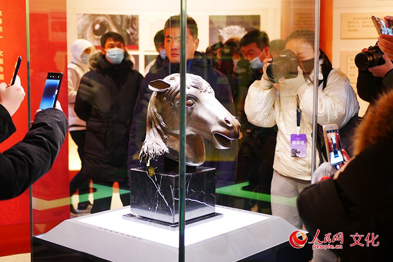 圓明園馬首銅像劃撥入藏儀式現(xiàn)場。人民網(wǎng) 韋衍行攝