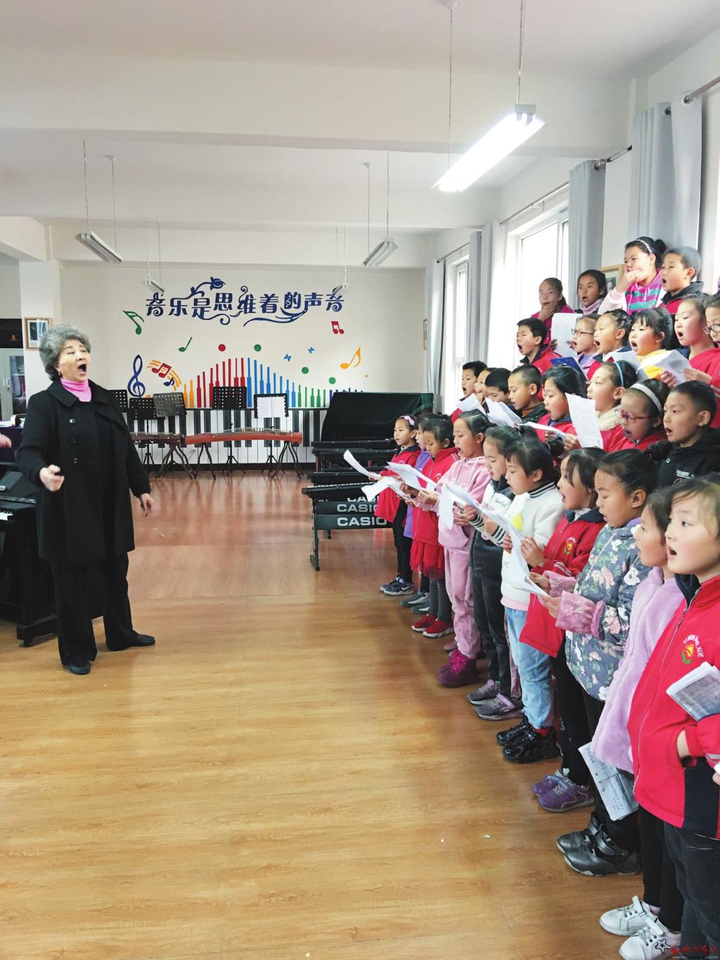 李克為靜樂童聲合唱團(tuán)排練節(jié)目