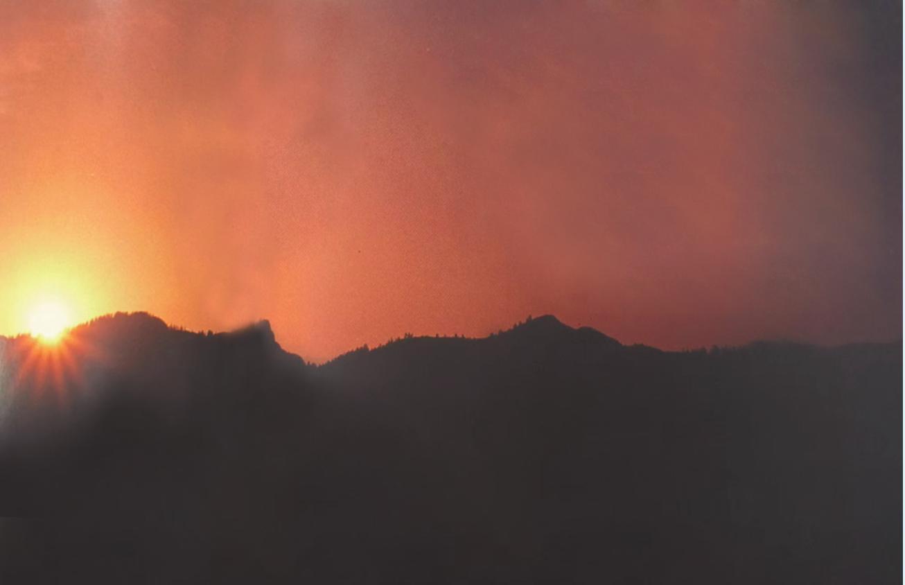 在海拔2796米的五臺(tái)山東臺(tái)頂,居高望遠(yuǎn),日出景象更加浩瀚壯闊,朝霞滿天,萬(wàn)道金光射向大地,云海、雪峰、金殿、金像相互輝映。
