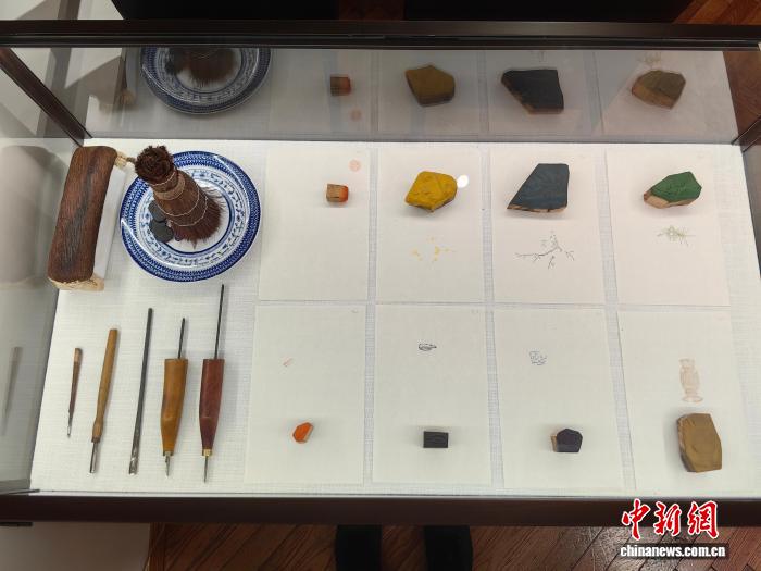 10月13日,中國(guó)饾版彩印信箋藝術(shù)展展出制作饾版彩箋的工具。 范宇斌 攝
