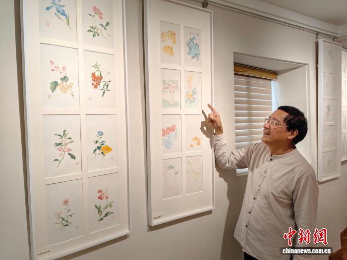 10月13日,資深出版人祝君波受訪時(shí)介紹宋慶齡定制的饾版彩箋。 范宇斌 攝