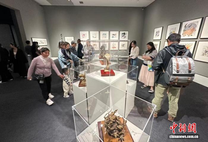 民眾正在觀看黃永玉的雕塑作品。程景偉 攝
