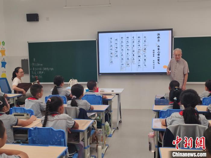 2024年10月,臺(tái)灣南音藝術(shù)家卓圣翔在廈門市翔安區(qū)實(shí)驗(yàn)學(xué)校教授音樂課。 (羅純禎 供圖)