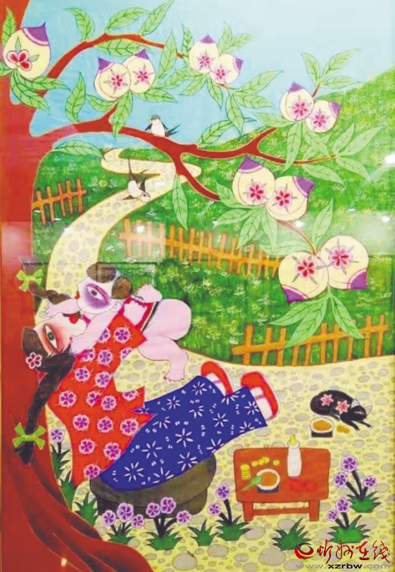 炕圍畫又稱“墻圍畫”,是一種中國民間常見的室內(nèi)裝飾畫。忻州處于高寒地帶,在農(nóng)村家家戶戶都用火炕取暖御寒,炕上的墻面極易脫落起皮,蹭臟衣物被褥。于是人們以刷墻所用的白土調(diào)以膠水,在環(huán)炕的墻上涂高約二尺的“圍子”,既保護了墻面,又使人們免遭臟衣污物之累。后來,炕圍畫逐漸發(fā)展為以顏料做底、色彩畫花、桐油涂罩,既鮮艷明亮,又堅固耐久。日常臟污了,用濕布擦拭,則又光亮如新。