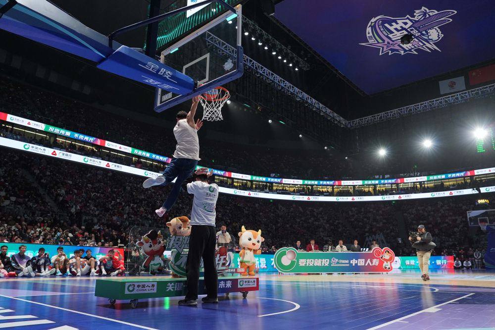 中場休息期間進(jìn)行了三個單項賽的比拼。主場作戰(zhàn)、來自福建隊的黎伊揚獲得技巧挑戰(zhàn)賽冠軍。山西隊原帥在三分球大賽決賽投出25分,以一分優(yōu)勢險勝龍獅隊賈明儒。扣籃大賽的冠軍是特邀外卡球員萬磊,他在比賽中穿著牛仔褲飛躍一人,完成“蝎子擺尾”式的扣籃。