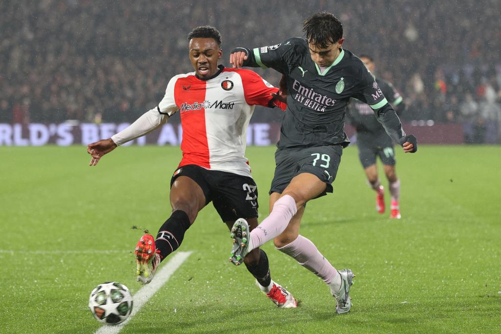 荷甲勁旅費(fèi)耶諾德主場迎戰(zhàn)AC米蘭,開場3分鐘,主隊(duì)取得閃電進(jìn)球。巴西前鋒派尚左路帶球,內(nèi)切后直接遠(yuǎn)射,客隊(duì)門將邁尼昂撲救失誤,AC米蘭0:1落后。此后雙方均未能改寫比分。
