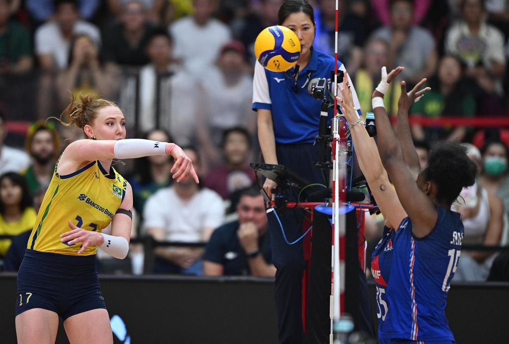 9月4日,巴西隊球員伯格曼(左)在比賽中進攻。新華社記者 侯昭康 攝 這場比賽,巴西隊5人得分上雙,伯格曼和加比分別得到17分和13分。加比說:“雖然最后是3:0,但感覺上像是3:2。這場比賽非常艱難,尤其是第二局。我想,跟上一次(對法國隊)不同的是,我們從一開始就更專注、更富有攻擊性。法國隊保持了她們的水準,不斷給我們施加壓力,從不放棄。而我們相信彼此,給彼此信心,在一些重要時刻替補球員發(fā)揮了關鍵作用?!?/p> 在6日的半決賽中,巴西隊將迎戰(zhàn)意大利隊。在展望這場比賽時,加比說:“她們是一支強大而穩(wěn)定的隊伍,不怎么犯錯,極具攻擊性。因此,我們必須充滿攻擊性,攔網(wǎng)和防守也必須頂?shù)米?。我們必須?chuàng)造機會、抓住機會,尤其是在反擊的時候。她們的水平很高,我們也不差,我們要相信自己的體系?!?/p> 在4日晚的另一場四分之一決賽中,世界排名第五的土耳其隊以25:14、22:25、25:14和25:23戰(zhàn)勝了世界排名第六的美國隊。半決賽中,土耳其隊將迎戰(zhàn)日本隊。 (責任編輯:蔡文斌) |