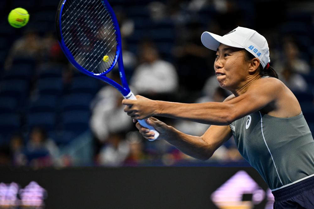 9月28日,高芙在比賽中回球。新華社發(fā)(馬子涵攝)