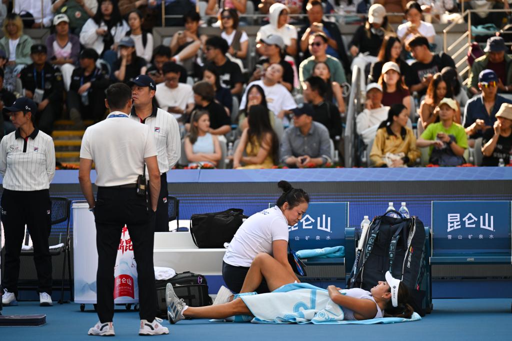 進(jìn)入第三盤,諾斯科娃先聲奪人,很快建立3:0的領(lǐng)先優(yōu)勢。局間休息時,醫(yī)務(wù)人員上場與鄭欽文交流。短暫溝通后,鄭欽文選擇退賽,比賽就此結(jié)束。