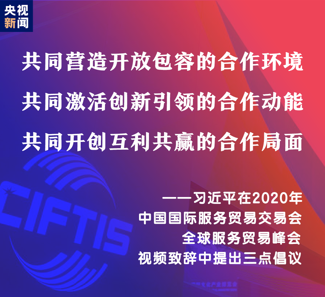 習近平表示,中國舉辦2020年中國國際服務貿(mào)易交易會,就是搭建起平臺和橋梁,讓各國人民充分展示服務貿(mào)易領(lǐng)域新發(fā)展新突破,共同享受人類社會發(fā)展進步新技術(shù)新成果。