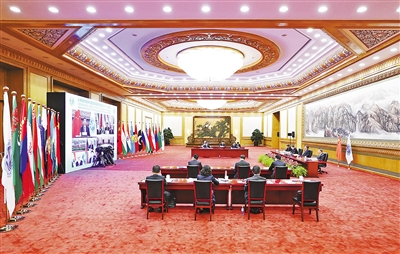 9月17日,國家主席習(xí)近平在北京以視頻方式出席上海合作組織成員國元首理事會第二十一次會議并發(fā)表重要講話。新華社記者 申 宏攝