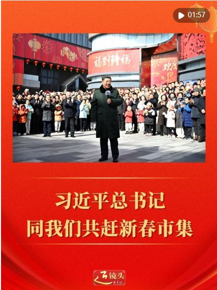 習近平總書記同人民群眾共趕市集、共迎新春,是年節(jié)里最溫暖的圖景。總書記走到百姓中間,送上真摯的新春祝福:“在農(nóng)歷馬年龍馬精神、身體健康、事業(yè)有成、闔家幸福!”