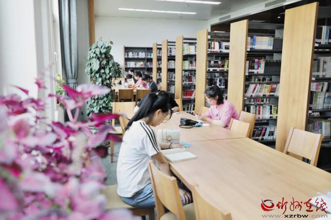7月15日,原平市圖書館里,青少年正在閱讀書籍??崾顏砼R,圖書館成了學(xué)子增長知識、消暑納涼的好去處。褚 震 攝
