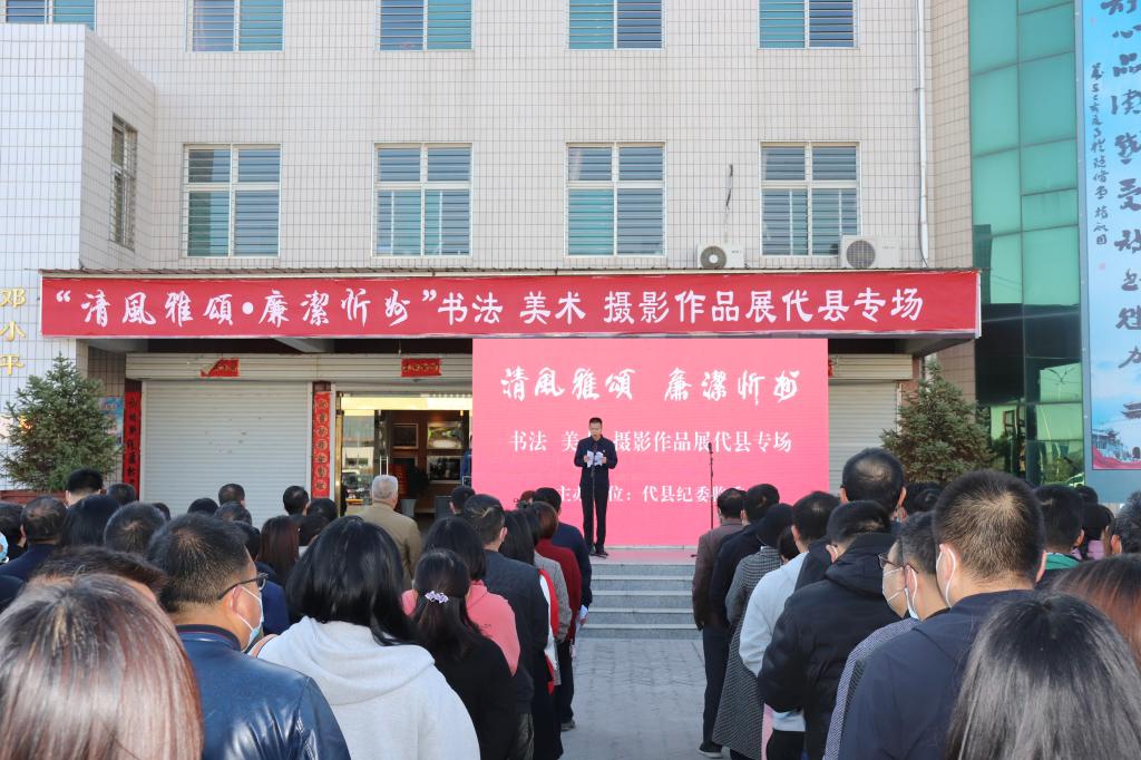 本次“清風(fēng)雅頌·廉潔忻州”書法美術(shù)攝影作品展,在代縣專場展出為期三天,入展作品共260幅,其中包括忻州市部分國家級名家特邀作品47幅,省內(nèi)外助展作品23幅,我縣作品15幅。展出作品分為攝影圖片、書法藝術(shù)、繪畫和剪紙四個部分,作品主題鮮明,風(fēng)格多樣,作者以書畫為載體,深入挖掘書畫藝術(shù)的廉潔內(nèi)涵,以畫承廉、畫賦廉意,結(jié)合傳統(tǒng)文化和現(xiàn)代手法,把理想信念、從政道德等反腐倡廉教育內(nèi)容,形象、生動、直觀地傳遞給廣大黨員干部群眾,使大家在欣賞中得到啟示,在愉悅中受到教育,讓代縣全體黨員干部在潛移默化中受到廉潔教育影響,同時營造“以廉為榮、全民崇廉”的黨風(fēng)廉政建設(shè)新格局。