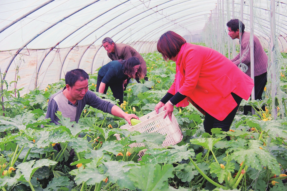 游客正在蔬菜大棚里采摘西葫蘆。本報實習(xí)記者劉迎春攝