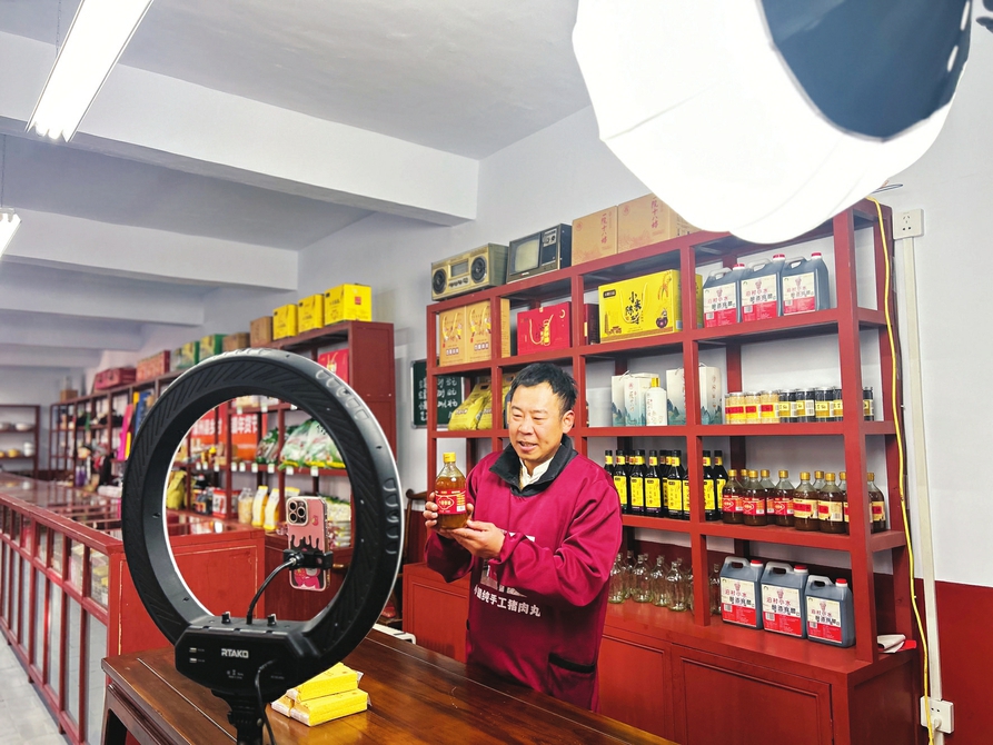 宋小朋在保福村供銷社里直播推介當(dāng)?shù)剞r(nóng)產(chǎn)品。晉睿攝