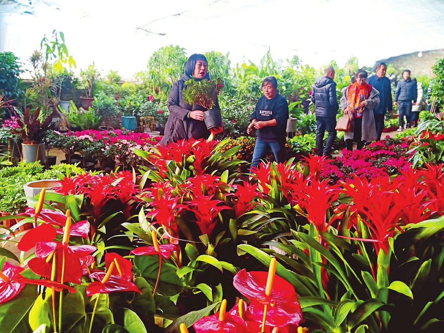 2月8日,原平市柳巷村花卉大棚里的鮮花爭奇斗艷,前來選花的人絡(luò)繹不絕,為來年圖個好彩頭,也為過年增添儀式感。(趙春曉 攝)