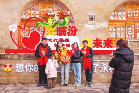 2月11日,在永和縣回家過年網(wǎng)紅打卡點(diǎn),游客在拍照留念。春節(jié)期間,該縣舉辦了“紅紅火火過大年 熱熱鬧鬧來接龍”春節(jié)系列文化活動(dòng),讓游客在歡樂祥和的氛圍中歡度佳節(jié)。閆銳鵬攝