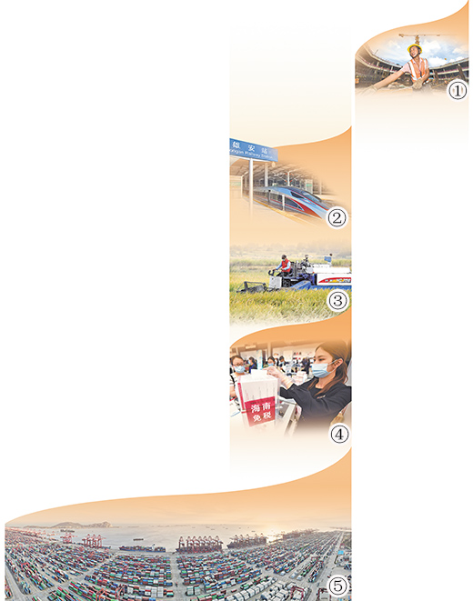 圖①:施工人員在深圳前海綜合交通樞紐建設(shè)現(xiàn)場(chǎng)忙碌。新華社記者 毛思倩攝 圖②:“復(fù)興號(hào)”動(dòng)車(chē)組列車(chē)??吭谛郯舱?。孫立君攝(影像中國(guó)) 圖③:在安徽滁州鳳陽(yáng)縣小崗村,農(nóng)民駕駛收割機(jī)收割水稻。新華社記者 劉軍喜攝 圖④:海口日月廣場(chǎng)免稅店的工作人員在打包免稅品。新華社記者 郭 程攝 圖⑤:俯瞰上海洋山港碼頭。新華社記者 方 喆攝 改革開(kāi)放鑄就的偉大改革開(kāi)放精神,極大豐富了民族精神內(nèi)涵,成為當(dāng)代中國(guó)人民最鮮明的精神標(biāo)識(shí)! ——摘自習(xí)近平總書(shū)記2018年12月18日在慶祝改革開(kāi)放40周年大會(huì)上的講話 改革開(kāi)放,當(dāng)代中國(guó)最顯著的特征、最壯麗的氣象。 從小崗破冰到深圳試水,從浦東開(kāi)發(fā)到濱海建設(shè),從海南弄潮到雄安啟航……40多年來(lái),改革開(kāi)放的腳步堅(jiān)定向前,極大改變了中國(guó)的面貌、中華民族的面貌、中國(guó)人民的面貌、中國(guó)共產(chǎn)黨的面貌。 “改革開(kāi)放鑄就的偉大改革開(kāi)放精神,極大豐富了民族精神內(nèi)涵,成為當(dāng)代中國(guó)人民最鮮明的精神標(biāo)識(shí)!”2018年12月18日,習(xí)近平總書(shū)記在慶祝改革開(kāi)放40周年大會(huì)上指出,改革開(kāi)放40年積累的寶貴經(jīng)驗(yàn)是黨和人民彌足珍貴的精神財(cái)富,對(duì)新時(shí)代堅(jiān)持和發(fā)展中國(guó)特色社會(huì)主義有著極為重要的指導(dǎo)意義,必須倍加珍惜、長(zhǎng)期堅(jiān)持,在實(shí)踐中不斷豐富和發(fā)展。 沿著改革開(kāi)放這條“必由之路”,我們黨帶領(lǐng)人民以一往無(wú)前的進(jìn)取精神和波瀾壯闊的創(chuàng)新實(shí)踐,讓改革開(kāi)放的大潮在神州大地奏響激揚(yáng)樂(lè)章。偉大的改革開(kāi)放精神跨越時(shí)空、歷久彌新,成為中國(guó)共產(chǎn)黨人精神譜系的重要組成部分。 解放思想、實(shí)事求是,開(kāi)辟中國(guó)特色社會(huì)主義道路 西望玉泉山,南鄰頤和園,冬日里的中共中央黨校分外莊重寧?kù)o。 2017年12月,在北京參加中國(guó)共產(chǎn)黨與世界政黨高層對(duì)話會(huì)的嘉賓,來(lái)到中央黨校參觀。在刻著“實(shí)事求是”4個(gè)大字的石碑前,外國(guó)政黨的領(lǐng)導(dǎo)人們紛紛留影。 “解放思想、實(shí)事求是,是改革開(kāi)放精神內(nèi)涵的一個(gè)重要體現(xiàn)?!敝泄仓醒朦h校(國(guó)家行政學(xué)院)馬克思主義學(xué)院院長(zhǎng)張占斌說(shuō)。 時(shí)間回到1978年的一個(gè)清晨,南京大學(xué)教師胡福明打開(kāi)廣播,聽(tīng)到自己的一篇投稿正式發(fā)表,標(biāo)題由原來(lái)的《實(shí)踐是檢驗(yàn)真理的標(biāo)準(zhǔn)》改為《實(shí)踐是檢驗(yàn)真理的唯一標(biāo)準(zhǔn)》。讓胡福明沒(méi)有想到的是,文章引發(fā)了一場(chǎng)全國(guó)范圍的真理標(biāo)準(zhǔn)問(wèn)題大討論,成為思想解放、改革開(kāi)放的先聲。 在鄧小平同志領(lǐng)導(dǎo)下和老一輩革命家支持下,黨的十一屆三中全會(huì)沖破長(zhǎng)期“左”的錯(cuò)誤的嚴(yán)重束縛,批評(píng)“兩個(gè)凡是”的錯(cuò)誤方針,充分肯定必須完整、準(zhǔn)確地掌握毛澤東思想的科學(xué)體系,高度評(píng)價(jià)關(guān)于真理標(biāo)準(zhǔn)問(wèn)題的討論,果斷結(jié)束“以階級(jí)斗爭(zhēng)為綱”,重新確立馬克思主義的思想路線、政治路線、組織路線。從此,我國(guó)改革開(kāi)放拉開(kāi)了大幕。 思想解放的大潮,如狂瀾蕩滌僵化落后的觀念,沖破思想的禁區(qū),打破發(fā)展的僵局。從“以階級(jí)斗爭(zhēng)為綱”到“以經(jīng)濟(jì)建設(shè)為中心”,從敢于“大包干”到敢砸“大鍋飯”,從“摸著石頭過(guò)河”到“殺出一條血路”,從“逢山開(kāi)路,遇水架橋”到“敢于啃硬骨頭,敢于涉險(xiǎn)灘”……改革開(kāi)放一路走來(lái),解放思想成為一條貫穿始終的主線,不斷推動(dòng)理論創(chuàng)新、制度創(chuàng)新、實(shí)踐創(chuàng)新,讓社會(huì)主義的偉大旗幟始終在中國(guó)大地上高高飄揚(yáng)。 大膽地試、勇敢地改,不斷解放和發(fā)展社會(huì)生產(chǎn)力 安徽省鳳陽(yáng)縣小崗村“金昌食府”院子里,陽(yáng)光正好。 說(shuō)起往事,年近80歲的嚴(yán)金昌精神矍鑠、目光如炬。1978年冬,嚴(yán)金昌等18位農(nóng)民堅(jiān)定地按下紅手印,實(shí)施包產(chǎn)到戶,拉開(kāi)了中國(guó)農(nóng)村改革的大幕。 如今,隨著農(nóng)村土地“三權(quán)分置”改革,嚴(yán)金昌又成為小崗村第一個(gè)拿到土地承包經(jīng)營(yíng)權(quán)證書(shū)的人,他把自家的30多畝土地都流轉(zhuǎn)出去,和孩子們?cè)俅蝿?chuàng)業(yè):辦農(nóng)家樂(lè)、開(kāi)超市、發(fā)展鄉(xiāng)村旅游…… 時(shí)代在變,改革開(kāi)放的精神不變。小崗村在安徽率先進(jìn)行了土地確權(quán)登記頒證試點(diǎn)、集體資產(chǎn)股份合作制改革等,村民實(shí)現(xiàn)了從“戶戶包田”到對(duì)村集體資產(chǎn)“人人持股”。2016年至2020年,小崗村村民年人均可支配收入從16169元躍升至27600元。 巨變不只發(fā)生在農(nóng)村地區(qū)。當(dāng)包產(chǎn)到戶“星火燎原”之際,經(jīng)濟(jì)特區(qū)也在“殺出一條血路”。