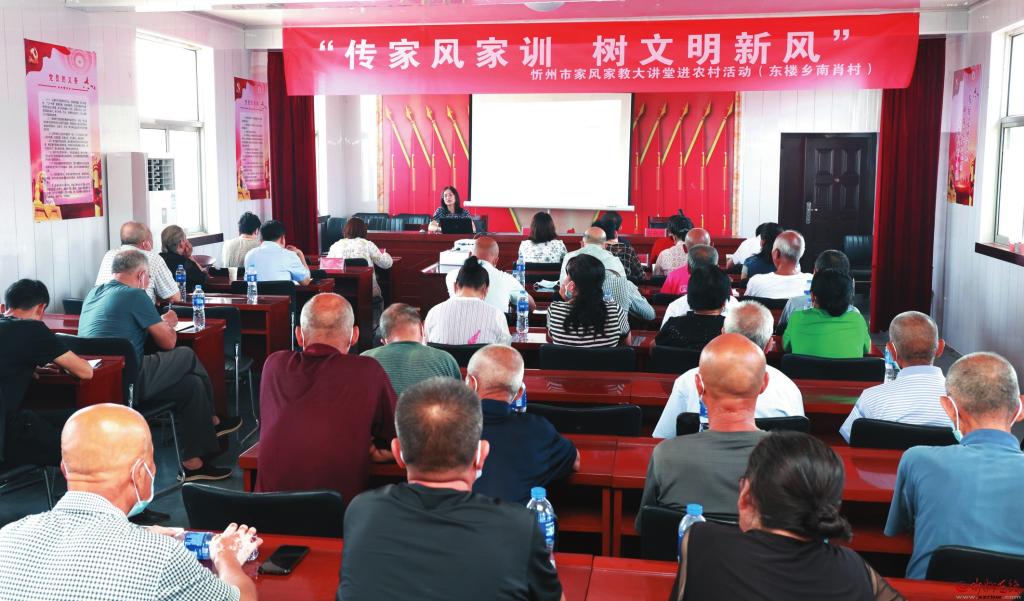 為大力弘揚(yáng)優(yōu)良家風(fēng)家訓(xùn),推動(dòng)家庭美德建設(shè),讓社會(huì)主義核心價(jià)值觀在家庭里生根、在親情中升華,近日,忻府區(qū)南肖村以“傳家風(fēng)家訓(xùn)、樹文明新風(fēng)”為主題的大講堂開講。( 張存良 攝