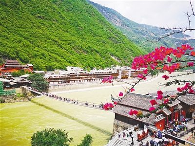 10月2日,四川省甘孜藏族自治州,游客在參觀瀘定橋。 本報(bào)記者 王明峰攝