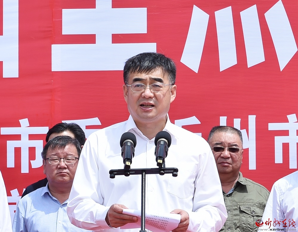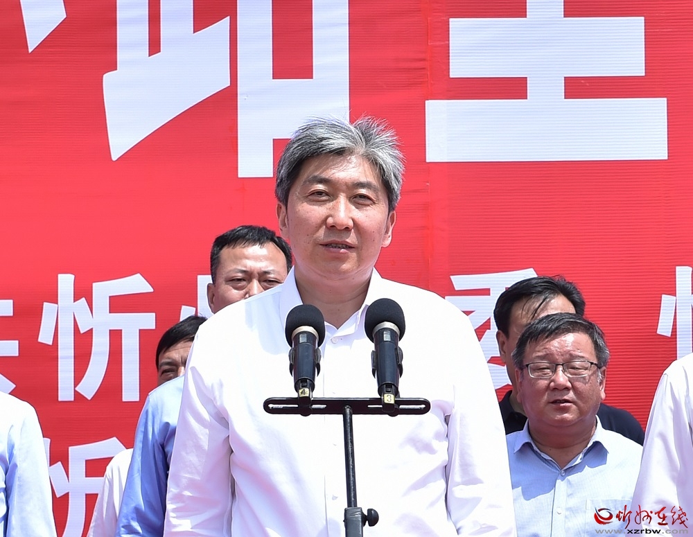 啟動(dòng)儀式上,朱曉東、李建國(guó)、郭奔勝、王珍、范建民分別為各指揮部授旗。原平市市長(zhǎng)、定襄縣縣長(zhǎng)、市交通運(yùn)輸局局長(zhǎng)分別就忻原大道將軍山隧道控制性工程和忻原大道跨朔黃鐵路、滹沱河大橋控制性工程及太忻大道跨二廣高速控制性工程建設(shè)作表態(tài)發(fā)言。