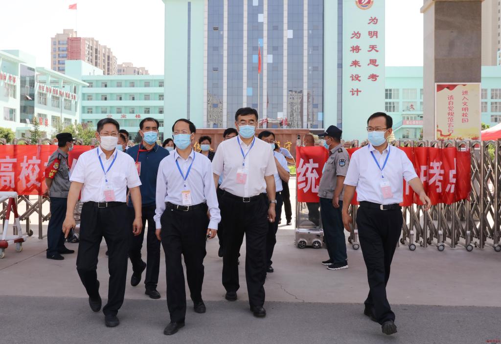 在忻州市高考指揮中心,李青山一行通過視頻指揮調(diào)度平臺(tái)實(shí)時(shí)察看各縣(市、區(qū))各考點(diǎn)考場試卷啟封、分發(fā)、開考情況,察看各考點(diǎn)周邊環(huán)境秩序,到保密室視頻察看各地試卷安全保密措施。隨后深入忻州十中和十一中考點(diǎn),仔細(xì)察看考生進(jìn)入考點(diǎn)時(shí)的測溫通道和安檢通道,實(shí)地走訪醫(yī)務(wù)室、考務(wù)室、保密室,通過視頻監(jiān)控察看各考場情況。李青山指出,高考是實(shí)現(xiàn)教育公平、社會(huì)公平的重要制度,承載著為國選人育人的重大使命。各級(jí)各相關(guān)部門要充分認(rèn)識(shí)做好疫情常態(tài)化防控形勢下高考工作的特殊性、重要性、復(fù)雜性,周密部署,扎實(shí)抓好高考期間各項(xiàng)工作,全力保障高考順利進(jìn)行。要按照職責(zé)分工和任務(wù)安排,抓好試題保密、考場引導(dǎo)、考風(fēng)考紀(jì)等關(guān)鍵環(huán)節(jié),切實(shí)把高考工作組織好、落實(shí)好,要加強(qiáng)考點(diǎn)周圍環(huán)境整治等高考各項(xiàng)服務(wù)保障,為考生營造安靜、有序、寬松的考試環(huán)境。各相關(guān)部門要按照高考有關(guān)規(guī)定,密切配合、通力合作,確保各項(xiàng)工作做到細(xì)而又細(xì)、實(shí)而又實(shí),把高考服務(wù)工作做得更細(xì)更扎實(shí),為廣大考生穩(wěn)定發(fā)揮提供良好考試環(huán)境。