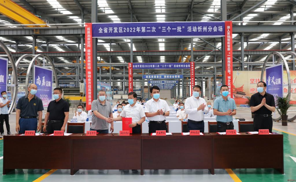 在定襄經(jīng)濟(jì)技術(shù)開發(fā)區(qū)寶航重工有限公司車間,與省主會(huì)場(chǎng)同步,李建國(guó)主持舉行了忻州市“簽約一批”代表項(xiàng)目集中簽約活動(dòng)。忻州經(jīng)濟(jì)開發(fā)區(qū)與山西汽運(yùn)集團(tuán)“汽運(yùn)網(wǎng)絡(luò)貨運(yùn)數(shù)字產(chǎn)業(yè)園項(xiàng)目”、原平經(jīng)濟(jì)技術(shù)開發(fā)區(qū)與山西晉海清潔能源有限公司“500MW/1GWh共享儲(chǔ)能電站項(xiàng)目”、繁峙經(jīng)濟(jì)技術(shù)開發(fā)區(qū)與山西華茂智能新材料有限公司“綜合治理提升工程項(xiàng)目”、定襄經(jīng)濟(jì)技術(shù)開發(fā)區(qū)與德福基金屬制品有限公司“年加工5000噸鋼材項(xiàng)目”、靜樂現(xiàn)代農(nóng)業(yè)產(chǎn)業(yè)示范區(qū)與北京中和智谷循環(huán)經(jīng)濟(jì)科技有限公司“200MW農(nóng)牧光儲(chǔ)一體化項(xiàng)目”、神池現(xiàn)代農(nóng)業(yè)產(chǎn)業(yè)示范區(qū)與中國(guó)郵政集團(tuán)“郵件處理中心項(xiàng)目”、五臺(tái)現(xiàn)代農(nóng)業(yè)產(chǎn)業(yè)示范區(qū)與雄縣方濟(jì)商貿(mào)有限公司“特色豆制品加工項(xiàng)目”、岢嵐經(jīng)濟(jì)技術(shù)開發(fā)區(qū)與中科人工智能科技有限公司“航天科技產(chǎn)業(yè)園項(xiàng)目”等8個(gè)代表項(xiàng)目分兩個(gè)批次進(jìn)行了簽約。