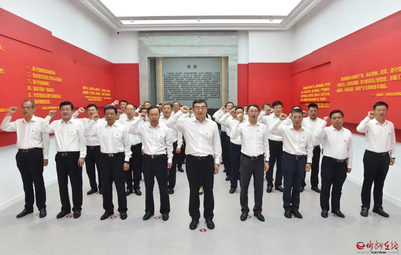 觀展前,同志們還集體觀看了警示教育片。觀展后,在宣誓廳鮮艷的中國共產(chǎn)黨黨旗前,李建國領(lǐng)誓,觀展同志一起重溫入黨誓詞。