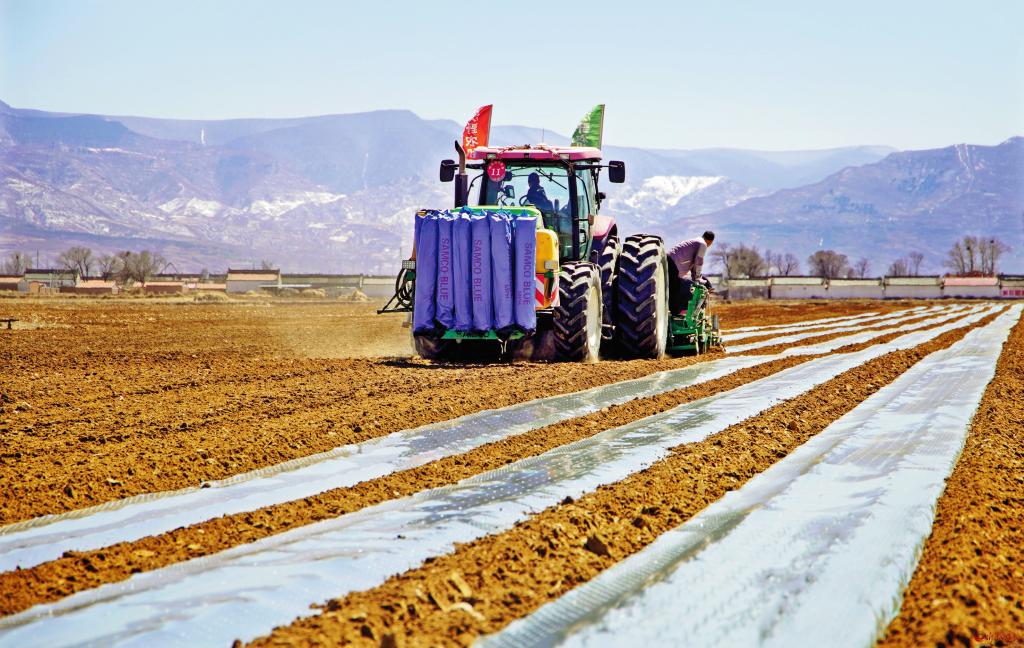 4月10日,五寨縣現(xiàn)代加工型馬鈴薯產(chǎn)業(yè)示范園的萬畝馬鈴薯輪作玉米播種工作全面啟動,預(yù)計今年輪作面積達2萬畝以上。為加快輪作進度,園區(qū)引進中國神農(nóng)農(nóng)業(yè)機械發(fā)展(山西)集團有限公司大型玉米綜合播種機,該播種機單次投種、投肥,鋪膜、布管面積可達100畝以上,預(yù)計全部輪作玉米播種工作將在5月初完成。圖為大型玉米綜合播種機正在播種。 (張向榮 攝