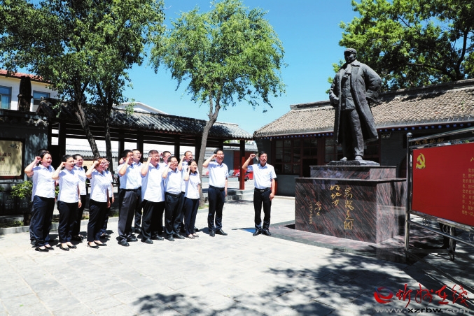 近日,農(nóng)行忻州分行黨委、忻州分行機關(guān)黨委組織黨員干部分赴岢嵐、右玉、五臺、興縣等紅色教育基地開展主題黨日活動。圖為該行黨委書記帶隊赴岢嵐縣宋家溝村開展“追尋紅色足跡,弘揚偉大建黨精神”主題黨日活動。 (李良辰攝)