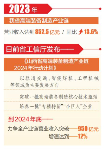 省工信廳日前發(fā)布《山西省高端裝備制造產(chǎn)業(yè)鏈2024年行動(dòng)計(jì)劃》,確立年度推進(jìn)目標(biāo):以軌道交通、智能煤機(jī)、工程機(jī)械等領(lǐng)域?yàn)橹饕l(fā)展方向,突破一批高端裝備制造核心技術(shù)瓶頸,培養(yǎng)一批“專精特新”“小巨人”企業(yè),提升全產(chǎn)業(yè)鏈科技創(chuàng)新能力,強(qiáng)化高端裝備制造供應(yīng)鏈穩(wěn)定性和配套能力。并提出,到2024年底,力爭全產(chǎn)業(yè)鏈營業(yè)收入突破950億元,增速達(dá)到12%。