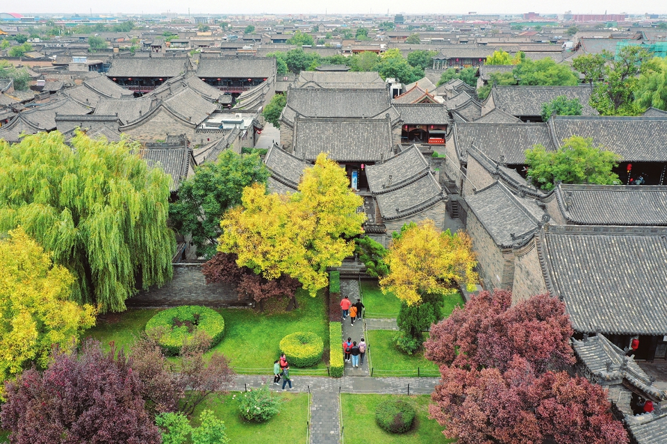10月4日,游人在世界文化遺產(chǎn)平遙古城游覽。當(dāng)日是我國(guó)傳統(tǒng)節(jié)日重陽節(jié),又逢國(guó)慶長(zhǎng)假,人們來到平遙古城,登高遠(yuǎn)眺,秋游觀景,歡度佳節(jié)。