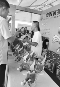 開幕式前,提前一兩個小時安檢入場的觀眾,遠(yuǎn)遠(yuǎn)就看到“翔翔”的召喚,紛紛在吉祥物專營區(qū)扎堆?!?8元一個,就剩30個了?!睂I區(qū)的售賣者告訴山西晚報記者,他們也沒想到這只褐馬雞如此受歡迎,很快就要被搶沒了。大同的趙女士搶到一個,她說朋友從外地剛回來不方便出門,讓她買一個留作紀(jì)念。