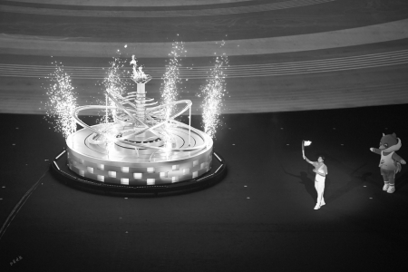 當(dāng)晚,“塞上祥云托起的巨幅畫卷”在高科技下展現(xiàn)了90分鐘的精彩,呈現(xiàn)了石窟文化、絲路文化、長城文化、黃河文化、太行文化、紅色文化等山西深厚的歷史文化底蘊(yùn)。開幕式接近尾聲,全場變暗,6位火炬手在一束追光中接連完成了火炬?zhèn)鬟f。
