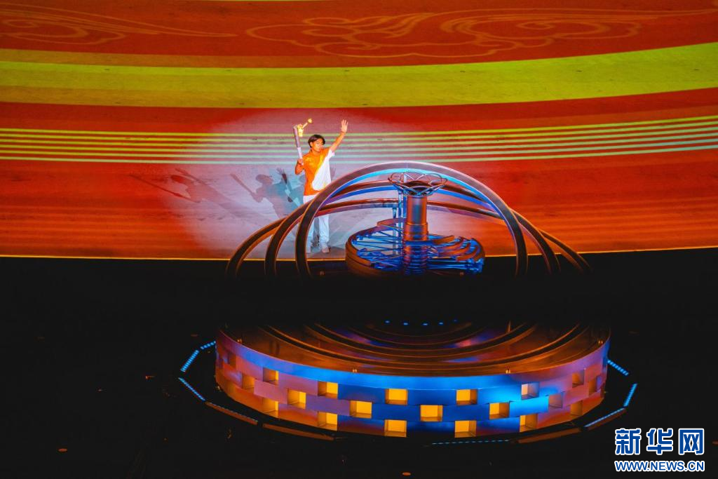 ??蘇翊鳴點(diǎn)燃主火炬。新華網(wǎng) 發(fā)(馬夢(mèng)迪 攝)