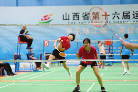 8月13日,省運會羽毛球乙組女子雙打決賽在山陰縣體育館開賽,太原隊兩位小將擊敗對手勇奪此項目冠軍。本報記者阮洋攝