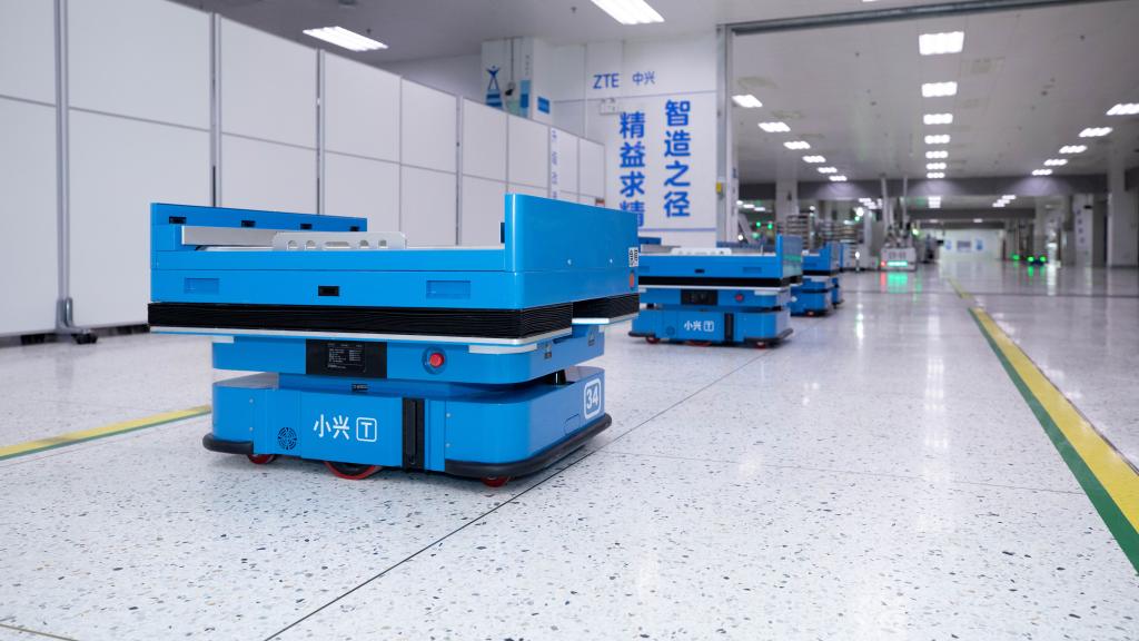 圖為中興通訊南京濱江基地穿梭于工廠的AGV小車“小興”。受訪者供圖