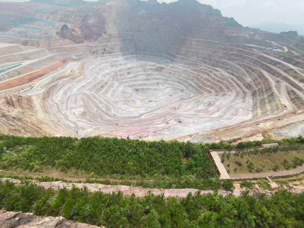 邊生產(chǎn)邊進行礦坑邊坡治理的紫金山金銅礦。新華社記者 秦宏 攝