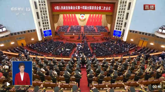 獨家視頻丨全國政協(xié)十四屆二次會議開幕 全場高唱國歌