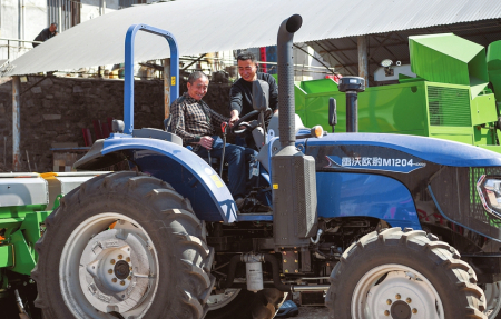 3月23日,臨汾市古縣舊縣鎮(zhèn)金紅農(nóng)機市場內(nèi),農(nóng)機手在銷售人員的指導(dǎo)下挑選拖拉機。閆銳鵬攝
