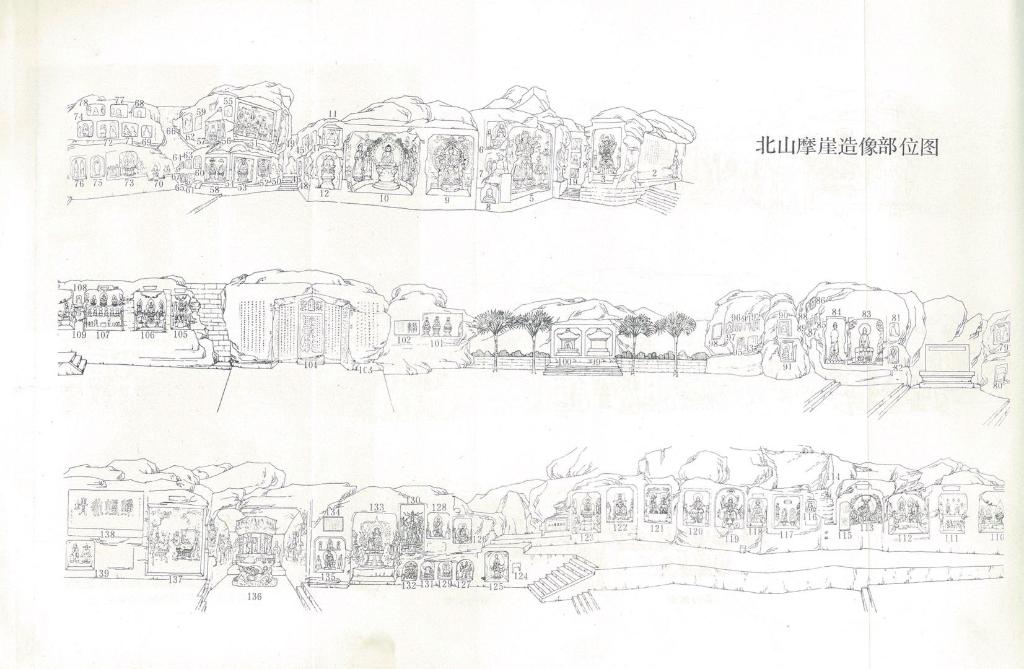 郭相穎繪制的北山摩崖造像部位圖。(大足石刻研究院供圖) 如今,隨著技術(shù)進步,借助三維測繪等數(shù)字技術(shù),石窟本體信息、石窟依存環(huán)境和地形地貌等數(shù)據(jù)信息得以全方位精準采集,1萬余尊大型造像有了數(shù)字檔案,在虛擬世界獲得了新生。 2022年7月首映的球幕電影,是活化利用大足石刻的另一個嘗試?!俺硕嘟嵌?、全景式的體驗,影片還讓一些隱藏在深山中游客難以見到的石窟造像、一些被歲月侵蝕的石刻藝術(shù),在影像中活了起來?!贝笞闶萄芯吭涸洪L蔣思維說,電影中的絕大部分素材都源于大足石刻文物數(shù)字化復原成果。