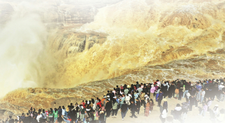 “壺口”的稱謂,最早見于《尚書·禹貢》中,如“既載壺口,治梁及岐”“壺口、雷首,至于太岳”,都與傳說中大禹治水的路線與策略有關(guān),壺口是大禹治水的始發(fā)之地。黃河壺口瀑布旅游區(qū)是國家5A級(jí)旅游景區(qū),是中國第二大瀑布,全世界最大的黃色瀑布。站在壺口觀景臺(tái)往上看,只見洶涌的黃河水簇?fù)碇?、吶喊著撲到眼前,其勢如千軍萬馬,漫山遍野般涌來,到了壺口,那一排排的巨浪在翻著水花馳騁飛奔中,突然墜入深坑,發(fā)出了震耳的嘶鳴聲,濺起了漫天水霧,再簇?fù)碇枷蜻h(yuǎn)方……而此時(shí)的你,只會(huì)感覺到大自然的偉岸和自己的渺小。