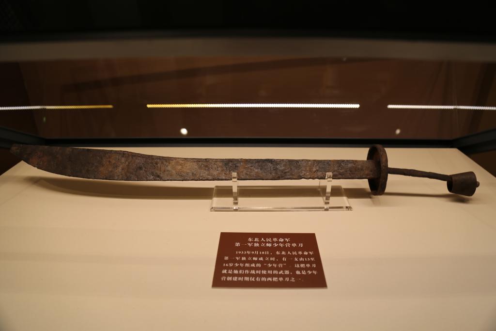 東北人民革命軍第一軍獨(dú)立師少年?duì)I單刀。新華社記者張博宇 攝 “九一八事變”后,中共滿洲省委派遣楊靖宇、趙尚志、周保中等共產(chǎn)黨員奔赴東北各地,開始創(chuàng)建黨領(lǐng)導(dǎo)下的抗日武裝。1933年秋,東北人民革命軍第一軍獨(dú)立師“少年?duì)I”成立。70多個(gè)少年加入這支隊(duì)伍,他們中有隨父母參加抗日的孩子,有被解放的童工,還有孤兒…… “這把繳獲來的鐵制單刀,是黨創(chuàng)建少年?duì)I時(shí)為之配備的武器之一。少年?duì)I跟隨將士們主要在吉林磐石地區(qū)展開抗日斗爭。”吉林省博物院歷史部副主任王航說。 1933年10月30日,少年?duì)I迎來首戰(zhàn)。那一役,他們在樺甸縣里面溝設(shè)伏,成功擊斃了日偽軍10人,俘虜10人,繳獲了大量物資,首戰(zhàn)告捷。1935年1月,中共磐石中心縣委機(jī)關(guān)遭到突襲。在突破敵人封鎖線途中,少年?duì)I沉著冷靜,隱藏在密林深處,打退了敵人一次次圍追堵截。 “少年?duì)I配合將士們英勇作戰(zhàn),破壞敵人交通運(yùn)輸線、攻占敵人縣城據(jù)點(diǎn),成就了敢打敢拼的‘鐵血少年?duì)I’威名?!蓖鹾秸f。?湯彥宜說,在中華民族生死存亡的歷史關(guān)頭,中國共產(chǎn)黨帶領(lǐng)中華兒女浴血奮戰(zhàn),書寫了百折不撓的抗戰(zhàn)史詩,孕育出偉大抗戰(zhàn)精神,激勵(lì)著黨團(tuán)結(jié)帶領(lǐng)人民不斷從勝利走向勝利。 (責(zé)任編輯:梁艷) |