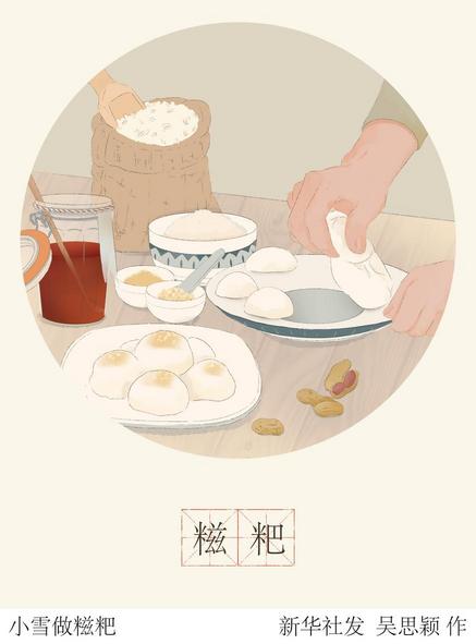 小雪輕揚,銀裝初上,冬天的景致格外美麗,這一時節(jié)的民俗活動也是豐富多樣的。華東師范大學(xué)民俗學(xué)研究所教授田兆元介紹,比如吃糍粑、腌臘肉、釀小雪酒等。“其中,吃糍粑,是源于春秋戰(zhàn)國時期的風(fēng)俗,相傳伍子胥在建城時將糯米蒸熟壓制成磚塊,然后放冷,既可以當(dāng)城墻基石,又能抵御糧荒,后來就成了南方地區(qū)一項民俗?!?/p>