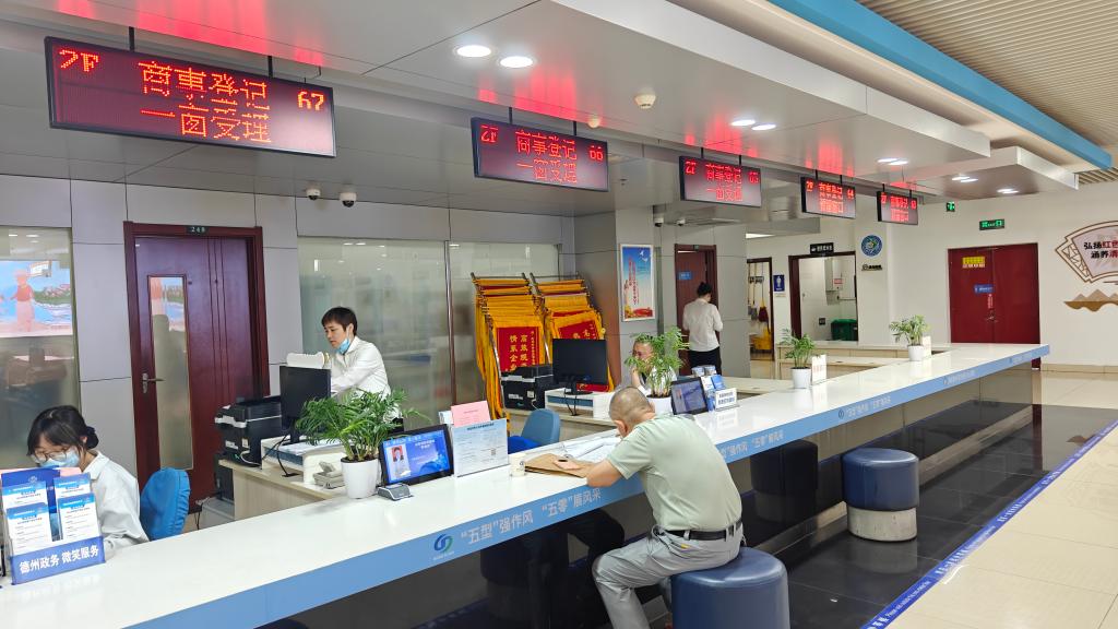 在德州市政務服務中心,工作人員正在受理企業(yè)登記信息備案變更業(yè)務。新華社記者蕭海川 攝