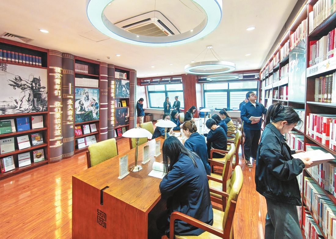 陽(yáng)泉市城區(qū)晉東二社區(qū)攜手市第十九中學(xué)校30余名師生,走進(jìn)陽(yáng)泉記憶·1947文化園——城市書(shū)房舉辦“書(shū)香躍動(dòng)智閱晉東”主題研學(xué)實(shí)踐活動(dòng)。張澤慧攝