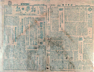 1945年9月7日,中共太岳區(qū)委機(jī)關(guān)報(bào)《新華日?qǐng)?bào)》(太岳版)在第三版全文登出了日本投降的原文,還將一版、四版內(nèi)容用少見的藍(lán)色油墨印刷,以顯示其具有特殊的紀(jì)念意義。王海勇藏